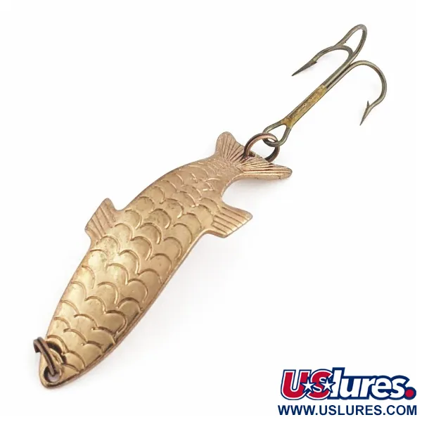 Tłoczone łuski na metalowej powierzchni nadają tej wahadłówce o wadze 7 g (1/4 oz) realistyczną teksturę. Zakrzywiony korpus o długości 5 cm (2") charakteryzuje się szczegółową sylwetką z płetwami i zwężającą się sekcją ogonową. Na odwrocie wyraźnie wytłoczono nazwę Phoebe, co wskazuje na jej pochodzenie z oferty Acme pod kodem produktu #24552. Ten konkretny model z miedzianym wykończeniem posiada ocenę stanu 5/5, zachowując czystą, odblaskową powierzchnię na całej przynęcie. Anatomiczny kształt, w tym wystające płetwy piersiowe i grzbietowe, pomaga zachować realistyczny profil pod różnymi kątami. Kotwiczka jest przymocowana z tyłu przez pojedynczy otwór w ogonie. Zaprojektowana do spinningu, dociążona metalowa konstrukcja pozwala na dalekie rzuty podczas połowu pstrągów, okoni lub sandaczy.