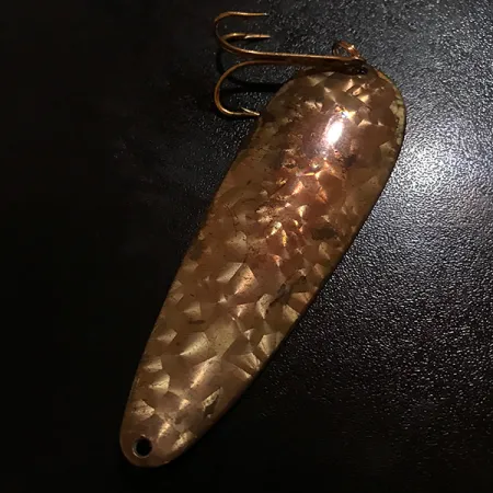 Przy długości 9 cm (3 1/2"), szeroka powierzchnia tej wahadłówki prezentuje charakterystyczne dla modelu 8743 teksturowane wykończenie „Crystal”. Dzięki wadze 28 g (1 oz), konstrukcja z grubej blachy stanowi dowód na legendarną trwałość amerykańskich produktów marki Eppinger. Podłużny, wklęsły kształt – znak rozpoznawczy projektów Lou Eppingera jeszcze z czasów jego początków w piwnicy w Detroit – zestawiono tutaj z klasyczną kotwicą. Ten egzemplarz zachował się w świetnym stanie, otrzymując ocenę 4/5 za czyste, lśniące powierzchnie oraz solidne uzbrojenie. Młotkowana faktura zapewnia wielopłaszczyznowe odbicia światła, co jest techniką stosowaną przez producenta z Dearborn od ponad stulecia. Warto wspomnieć, że skuteczność tych błystek sprawiła, iż w czasie wojny trafiały one do zestawów przetrwania dla lotnictwa rządu USA. Podczas spinningu czy trollingu, znaczna waga pozwala przynęcie dotrzeć do głębszych partii wody przy zachowaniu stabilnej pracy. Kotwica w kolorze brązu jest pewnie zamocowana za pomocą mocnego kółka łącznikowego z tyłu, natomiast przednie oczko pozostaje wolne do zamontowania krętlika.