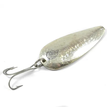 Ważąca solidne 21 g (3/4 oz) błystka wyróżnia się wycofanym już z produkcji wykończeniem Crystal Scale, które nadaje jej podłużnemu korpusowi teksturowaną, odblaskową powierzchnię. Przy długości 7 cm (2 3/4"), ten model Eppinger Dardevle Dardevlet o kodzie produktu 2240 stanowi klasyczny element historii wędkarstwa ze stanu Michigan. Na przedniej części widnieje charakterystyczne wybite logo z diabłem, natomiast na wewnętrznej, wklęsłej stronie znajduje się wyraźna sygnatura „DARDEVLET DETROIT USA”. To konkretne oznaczenie łączy przynętę z początkami firmy w Detroit, jeszcze przed jej przeniesieniem do Dearborn w 1959 roku. Wahadłówka jest uzbrojona w mocny dwuhak zamocowany na wytrzymałym kółku łącznikowym, co zapewnia niezawodność podczas spinningowania lub trollingu. Stan oceniany na 4/5 potwierdza czysty, lśniący metal oraz wyraźny wzór łuski i wybite oznaczenia. Historycznie przynęty te cieszyły się tak dużym zaufaniem ze względu na swoją skuteczność, że stanowiły niegdyś standardowe wyposażenie lotniczych zestawów survivalowych armii USA. Waga i kształt tej 21-gramowej przynęty sprawiają, że szczególnie dobrze nadaje się ona do dalekich rzutów i szybkiego sprowadzania na głębokość w różnych warunkach wodnych.