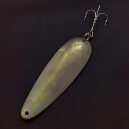 Wytłoczony napis „DARDEVLE DETROIT U.S.A.” na wklęsłej stronie identyfikuje tę metalową przynętę jako klasyk Eppinger z połowy XX wieku. Przy długości 3 1/2" (9 cm), niklowane wykończenie działa jako niezawodny wabik, odbijając światło w toni wodnej. Całkowita waga 1 oz (28 g) sprawia, że jest to solidny wybór do rzutów pod wiatr lub osiągania znacznych głębokości podczas łowienia szczupaków i musky. Stan oceniany na 4/5, przy czym platerowana powierzchnia zachowuje wyraźne odbicie na szerokim korpusie w kształcie łzy. Historycznie sklasyfikowany na okres od lat 50. do 80. XX wieku, ten egzemplarz pozostaje funkcjonalnym przykładem produkcji sprzętu wędkarskiego z Detroit. Identyfikacja tej konkretnej wahadłówki jest skatalogowana pod numerem Product Code 24605.