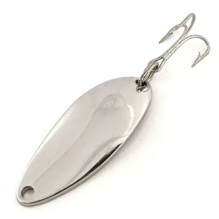 Ta niklowana wahadłówka, z wyraźnym napisem „DEVLE-DOG 5200 DETROIT USA” wybitym po wklęsłej stronie, stanowi klasyczny rozdział w historii produkcji firmy Eppinger. Przy długości 4 cm (1 1/2”) i wadze 7 g (1/4 oz), jej zwarty profil świetnie sprawdza się zarówno w spiningu, jak i trollingu. Polerowane, niklowane wykończenie zapewnia intensywne odblaski, co czyni ją skutecznym wyborem w czystej wodzie, gdzie doskonale imituje naturalny wygląd drobnicy. Egzemplarz o kodzie produktu 12822 jest uzbrojony w kotwiczkę zamocowaną na kółku łącznikowym, co podkreśla solidność i walory użytkowe wypracowane przez markę Eppinger w Detroit już od 1906 roku. Stan oceniono na 5/5 – metalowa powierzchnia jest czysta i nie nosi widocznych śladów zużycia. Sygnatura wskazuje, że przynęta pochodzi z okresu sprzed przeniesienia firmy do Dearborn w 1959 roku, co wiąże ją z wczesnymi sukcesami marki osiągniętymi dzięki autorskim matrycom.