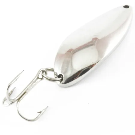 Wykończona niklem na lustrzany połysk, ta wahadłówka o wadze 18 g (2/3 oz) posiada klasyczną sygnaturę „DEVLE DOG 5400 DETROIT U.S.A.” głęboko wytłoczoną w metalu. Mierząca 5,5 cm (2 1/4") długości przynęta Eppinger Dardevle Devle Dog 5400, oznaczona kodem produktu 3710, stanowi element wędkarskiego dziedzictwa stanu Michigan z okresu przed przeniesieniem firmy do Dearborn w 1959 roku. Konstrukcja z grubej blachy została zestawiona z ostrą kotwicą zamocowaną na solidnym kółku łącznikowym, co czyni ją niezawodnym wyborem do dalekich rzutów oraz trollingu. Ten konkretny egzemplarz jest zachowany w doskonałym stanie, otrzymując ocenę 5/5 za wyjątkowo czystą powierzchnię i czytelną sygnaturę. Podłużny, wklęsły kształt korpusu jest charakterystyczny dla modelu Devle Dog i został zaprojektowany tak, aby zapewnić stabilną pracę podczas prowadzenia w toni wodnej. Wczesne dziedzictwo produkcyjne Lou Eppingera z Detroit jest wyraźnie widoczne w kunszcie wykonania tej klasycznej wahadłówki.