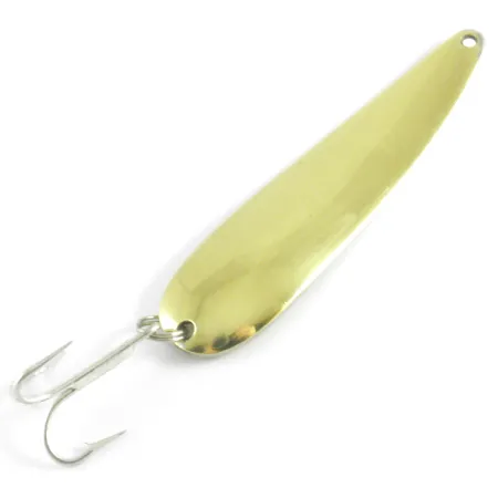 Opatrzona napisem z miejscem pochodzenia „DETROIT, U.S.A.”, ta wahadłówka o masie 1 uncji (28 g) to niezwykły kawałek historii firmy Eppinger. Przy długości dokładnie 4 cali (10 cm), model Dardevle Seadevle wyróżnia się lśniącym złotym wykończeniem, które mimo upływu lat nie straciło swojego blasku. Jej wklęsły, podłużny kształt to kwintesencja projektu, który Lou Eppinger dopracował w swojej piwnicy w Michigan na początku XX wieku. Na wypukłej stronie, obok lokalizacji producenta, głęboko wytłoczono nazwę „SEADEVLE” – to cecha charakterystyczna egzemplarzy powstałych przed przeniesieniem firmy do Dearborn w 1959 roku. Ten konkretny egzemplarz o kodzie produktu 4293 posiada ocenę stanu 5/5, co potwierdza czystą powierzchnię i solidne uzbrojenie. Oryginalna kotwica jest zamocowana na wytrzymałym kółku łącznikowym, typowym dla przynęt stworzonych do ciężkiego spinningu lub trollingu. Kolekcjonerzy z pewnością docenią wyraźne tłoczenie liter na tle wypolerowanego koloru przypominającego mosiądz.
