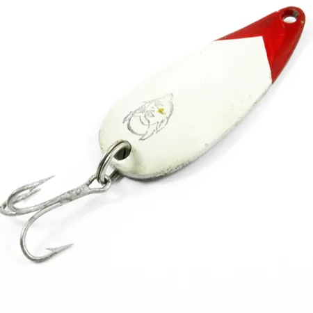 Błystka wahadłowa o długości dokładnie 4,5 cm posiada tłoczony, niklowany tył, który potwierdza jej autentyczne amerykańskie pochodzenie. Przednia strona charakteryzuje się wykończeniem w kolorze kremowym (ivory) z wyraźnym czerwonym akcentem przy zaczepie. Na środku korpusu widnieje charakterystyczne logo z głową diabła – symbol marki Eppinger, znany od 1906 roku, kiedy to Lou Eppinger zaczął ręcznie wytwarzać przynęty w Detroit. Po odwróceniu tej 9-gramowej przynęty ukazuje się czysty, niklowany rewers z głębokim tłoczeniem DARDEVLE SPINNY U.S.A. Znalezienie egzemplarza w tak doskonale zachowanym stanie – ocenionym na 5/5 – to prawdziwa gratka dla każdego kolekcjonera. Uzbrojenie, w tym kółko łącznikowe i kotwica, pozostaje lśniące i solidne. Te mniejsze modele Spinnie są doskonałymi przykładami zastosowania autorskich matryc, których Eppinger używał do uzyskania charakterystycznej pracy wahadłowej podczas wolnego prowadzenia. Dla wędkarzy łowiących w czystej wodzie błysk niklowanego tyłu zapewnia doskonałą widoczność przynęty. Oznaczona kodem produktu 3774, ta konkretna błystka reprezentuje linię tak skuteczną, że niegdyś wchodziła w skład wojskowych zestawów survivalowych dla lotnictwa. Wklęsły, podłużny kształt został precyzyjnie wyprofilowany, aby naśladować naturalny ruch drobnicy bez konieczności szybkiego zwijania linki.