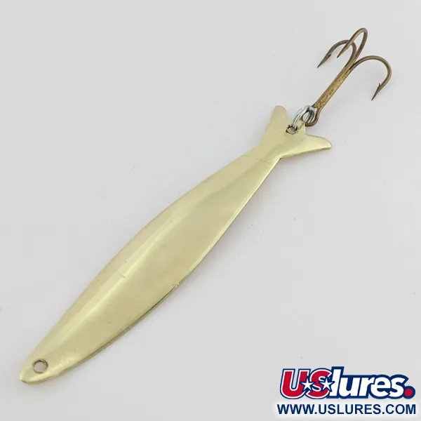 Mosiężne powierzchnie tej błystki wahadłowej firmy Eagle Tool. inc. odbijają światło ciepłym, naturalnym blaskiem. Metalowy korpus o wadze 3/16 oz (6 g) jest przeznaczony do lekkich zestawów lub spinningu. Długość 2 3/4" (7 cm) nadaje przynęcie smukły profil, który stawia niski opór w wodzie podczas prowadzenia. Ta konkretna błystka jest w stanie nieużywanym, nie nosi śladów kontaktu z wodą ani zużycia. Pod kodem produktu 24498 kryje się prosta, skuteczna konstrukcja skupiona na rozkładzie masy w celu uzyskania dużych odległości rzutowych. Mosiężne wykończenie jest czyste i jednolite na całej powierzchni. Kotwice zamontowano przy użyciu standardowych elementów, typowych dla produkcji Eagle Tool z tamtego okresu.