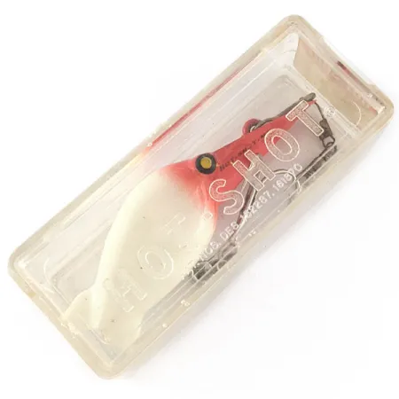 Biały korpus z intensywnie czerwoną głową to cechy charakterystyczne woblera Eddie Pope Hot Shot M 306 o kodzie produktu 21627. Przynęta o wadze 1/4 oz (7 g) i długości 2 1/4" (6 cm) stanowi klasykę amerykańskiego rzemiosła wędkarskiego. Na czerwonym sterze wyraźnie widnieje sygnatura „HOT-SHOT-M2”, określająca konkretny wariant tego modelu. Produkt jest nieużywany i znajduje się w oryginalnym, przezroczystym pudełku z wytłoczonym logo oraz numerami patentowymi DES. 182287 i 161870. Kompletne, oryginalne uzbrojenie obejmuje kotwicę brzuszną i ogonową zamocowane na metalowych kółkach łącznikowych. Ten egzemplarz nigdy nie był używany i zachowany jest w doskonałym stanie 5/5.