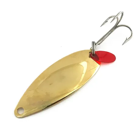 Ta wahadłówka o długości 5 cm (2") charakteryzuje się lśniącym złotym wykończeniem o wysokim połysku. Na wklęsłej stronie wybita sygnatura „JOHNSON'S SPRITE” potwierdza jej pochodzenie z USA, co dla kolekcjonerów jest istotnym detalem przeważającym nad późniejszą chińską produkcją. Model o wadze 7 g (1/4 oz), oznaczony kodem produktu 9323, posiada oryginalne uzbrojenie, w tym srebrną kotwicę oraz charakterystyczny czerwony plastikowy wabik przy tylnym kółku łącznikowym. Stan zachowania tego egzemplarza to 5/5, z lustrzaną powierzchnią oraz czystą i ostrą kotwicą.