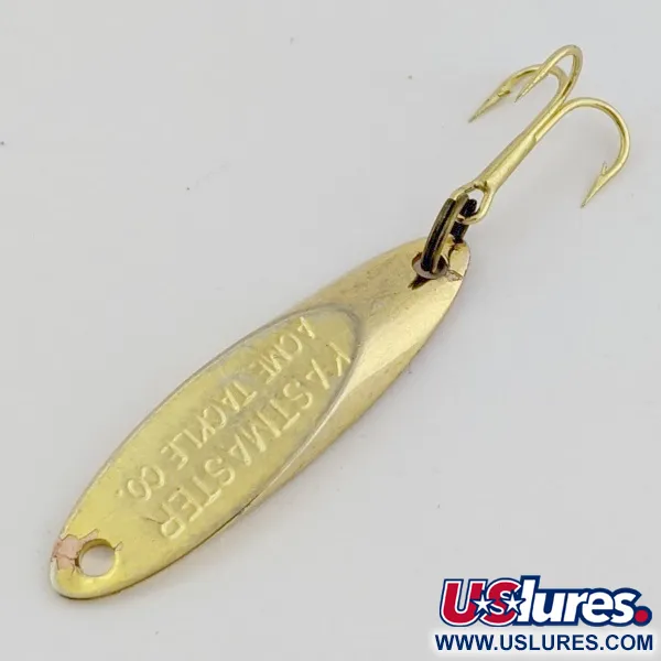 Pozłacana powierzchnia podkreśla charakterystyczny, kanciasty profil tej wahadłówki o wadze 3,5 g (1/8 oz). Przy długości 3,5 cm (1 1/2"), na przedniej części przynęty wyraźnie widać wytłoczony stempel Acme Tackle Co. Precyzyjnie fazowane krawędzie ułatwiają stosowanie jej w głębokiej wodzie jako pilkera lub do rzutów w silnym nurcie. W pobliżu oczka widoczne są lekkie ślady użytkowania, odsłaniające małe punkty metalu bazowego, co jest zgodne z oceną stanu 4/5. Wysoka widoczność jest zachowana dzięki odblaskowemu, złotemu wykończeniu, które pozostaje lśniące na większości powierzchni. Kod produktu 24510.