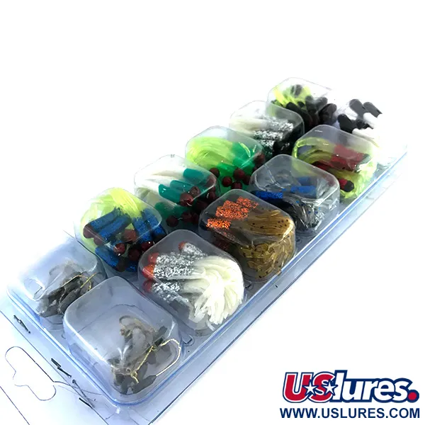 Archiwum muzealne: zestaw Creme Maxi Tail 100 szt. i 19 główek jigowych, niebieski/czerwony/żółty/zielony/srebrny/złoty/czarny/brązowy #8368