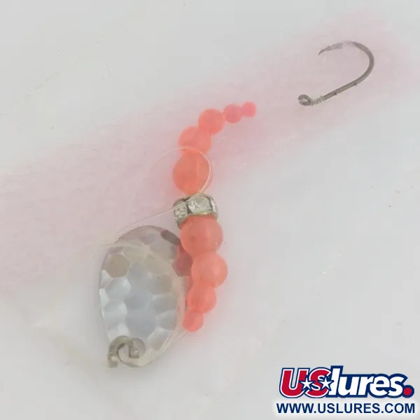Młotkowana powłoka niklowa na skrzydełku obrotówki pozwala на maksymalne odbicie światła nawet przy bardzo powolnym prowadzeniu. Ten zestaw Mack's Lure do połowu kokanee składa się z serii różowych paciorków o stopniowanej wielkości, które prowadzą do charakterystycznego akcentu Wedding Ring wysadzanego dżetami. Zestaw o wadze 2 g (1/16 oz) został specjalnie wyważony do trollingu, gdzie wymagana jest delikatna prezentacja, aby sprowokować branie. Przypon z przezroczystej żyłki monofilamentowej sprawia, że uwaga skupia się na błysku paletki i kolorze koralików, prowadząc pojedynczy haczyk w sposób dyskretny. Produkt jest w stanie nieużywanym, dzięki czemu niklowe wykończenie pozostaje jasne, a różowe paciorki nie wyblakły. Kod produktu 24487.