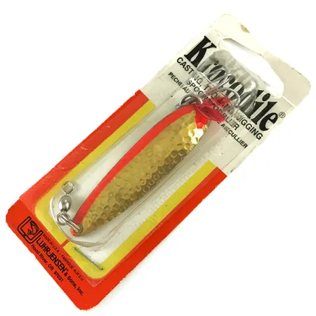 Archiwum muzealne: Luhr Jensen Krocodile DIE #4 UV (świeci w ultrafiolecie), młotkowany mosiądz/czerwony UV - świeci w świetle ultrafioletowym, 14 g błystka wahadłowa #6228