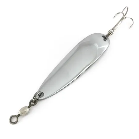 Ta wahadłówka o masie 23 g (3/4 oz) jest wystarczająco ciężka, by umożliwić naprawdę dalekie rzuty, i stanowi klasyczny przykład wszechstronności oferty Luhr Jensen. Na wewnętrznej, wklęsłej stronie wyraźnie wybito nazwę marki oraz znak towarowy Krocodile; ten konkretny model Die #5 o kodzie produktu 7579 ma 8,5 cm (3 1/4") długości. Wykończenie w polerowanym niklu jest w idealnym stanie (5/5), zachowując oryginalny blask na całym wygiętym korpusie w kształcie łezki. Kolekcjonerzy docenią autentyczne amerykańskie rzemiosło, gdyż przynęta ta posiada solidny osprzęt typowy dla okresu swojej produkcji, w tym wysokiej jakości krętlik baryłkowy oraz ostrą kotwicę zamocowaną na wytrzymałych kółkach łącznikowych. Grubość blachy zapewnia gęstość niezbędną do sprowadzenia przynęty w głębsze partie wody podczas prowadzenia lub przy pionowym jigowaniu w pobliżu podwodnych struktur. Każdy detal, od zaokrąglonych krawędzi metalu po wyraźne oznaczenie pochodzenia z Hood River w stanie Oregon, odzwierciedla trwałość, dzięki której seria ta stała się obowiązkową pozycją w pudełkach wędkarskich od Wielkich Jezior po wybrzeże Pacyfiku.