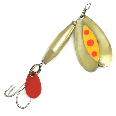 Mosiężny rdzeń tej obrotówki o wadze 1/2 oz (14 g) zapewnia dociążenie niezbędne do sięgania głębiej położonych stanowisk podczas rzutu. Luhr Jensen Les Davis Bolo UV, oznaczona kodem produktu 5756, mierzy 8 cm (3 1/4") i bazuje na polerowanej mosiężnej paletce. Tym, co wyróżnia ten konkretny egzemplarz, jest malowanie reagujące na promieniowanie UV; żółty wzór i jaskrawopomarańczowe kropki zaprojektowano tak, by w warunkach słabego oświetlenia zyskały intensywny blask. Jako produkt wyprodukowany w USA, cechuje się wysoką jakością wykonania, posiada ostrą kotwicę i mały czerwony znacznik dla dodatkowego kontrastu wizualnego. Stan przynęty to solidne 5/5 – mosiężne i malowane powierzchnie są doskonale zachowane. Konstrukcja ta podkreśla ewolucję serii Bolo, łącząc nowoczesną technologię odblaskową z tradycyjnym profilem przynęty.
