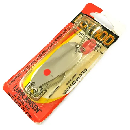 Wykonana z litego mosiądzu wahadłówka o masie 1/2 oz (14 g) to klasyczna przynęta przeznaczona do spinningu i trollingu. Model Les Davis Hotrod marki Luhr Jensen ma długość 2 1/4 cala (5,5 cm) i wyróżnia się wykończeniem Nickel / Red Dot UV z lustrzaną, srebrną powierzchnią oraz pojedynczym czerwonym punktem. Produkt o kodzie 6229 jest fabrycznie nowy i znajduje się w oryginalnym blistrze, który według naklejki na odwrocie pochodzi z początku 1998 roku. Przynęta jest uzbrojona w standardową kotwicę, a przy uszku do wiązania linki umieszczono mały czerwony koralik dla zwiększenia kontrastu. Informacje na opakowaniu wskazują, że została wyprodukowana w USA, w zakładzie w Hood River w stanie Oregon.