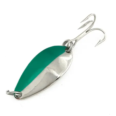 Połączenie niklu z wyrazistą zielenią dzieli korpus tej klasycznej wahadłówki, co pozwala zidentyfikować ją jako rzadki egzemplarz z czasów przed przejęciem marki przez firmę Acme. Przy wadze 5 g (3/16 oz) i długości 3 cm (1 1/4"), model ten o kodzie produktu 7416 stanowi przykład rzemiosła oryginalnej amerykańskiej firmy Seneca Lure. Kolekcjonerzy bez trudu rozpoznają charakterystyczne tłoczenie „LITTLE CLEO” na spodniej stronie z polerowanego niklu – znak rozpoznawczy produkcji z okresu przed zmianą właściciela marki na początku lat 80. Ten konkretny egzemplarz jest nieużywany, zachował fabryczny blask oraz oryginalne uzbrojenie w postaci ostrej kotwiczki. Takie zestawienie kolorystyczne zaprojektowano z myślą o silnym kontraście wizualnym, dzięki czemu przynęta ta stała się nieodłącznym elementem wielu pudełek wędkarskich w połowie ubiegłego wieku, idealnym do lekkiego spinningu.