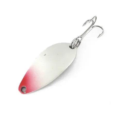 Połyskujący lakier White Pearl przechodzi w jaskrawoczerwony kolor na przedzie tej wahadłówki o wadze 5 g (3/16 oz). Wyprodukowana przez Seneca Lure Co. w USA, jeszcze przed przejęciem marki przez firmę Acme na początku lat 80., ta Little Cleo (kod produktu: 7784) to klasyka wzornictwa wędkarskiego z połowy ubiegłego wieku. Korpus o długości 3 cm (1 1/4") charakteryzuje się charakterystycznym, szerokim profilem, przeznaczonym zarówno do spinningowania, jak i trollingu. Niklowany rewers posiada wyraźnie wytłoczone logo „LITTLE CLEO”, co oddaje standardy dawnej amerykańskiej produkcji. Egzemplarz oceniony na 5/5, zachowuje nienaganną powłokę perłowego lakieru oraz wysoki połysk gołego metalu. Na uzbrojenie składa się pojedyncze kółko łącznikowe oraz ostra, dobrze zachowana kotwica.