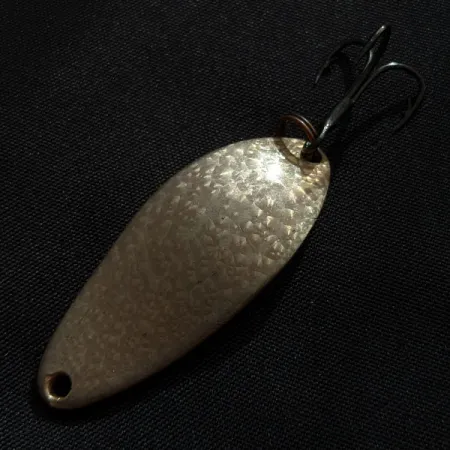 Młotkowana faktura nadaje mieniący się charakter powierzchni tej wahadłówki Seneca Little Cleo Crystal o wadze 1/4 oz (7 g), zaprojektowanej specjalnie po to, by skutecznie odbijać światło podczas rzutów lub trollingu. Na odwrocie, w metalu, wyraźnie wybito oznaczenie „Little Cleo Wigl-Lure A Seneca Lure”, co potwierdza amerykańskie pochodzenie tego egzemplarza. Ten przedmiot, oznaczony kodem produktu 22025, zachował się w doskonałym stanie, ocenianym na 5/5. Korpus w kształcie łezki o długości 1 1/2" (4 cm) jest wyposażony w kotwicę w ciemnym wykończeniu, zamocowaną na solidnym kółku łącznikowym. Wykończenie o strukturze kryształu zapewnia wyraźną fakturę, odróżniającą ją od gładkich wahadłówek, dzięki czemu przynęta ta stanowi cenny element każdej kolekcji vintage. Każdy szczegół wybitych sygnatur pozostaje ostry i czytelny na wklęsłej, wewnętrznej stronie metalu.