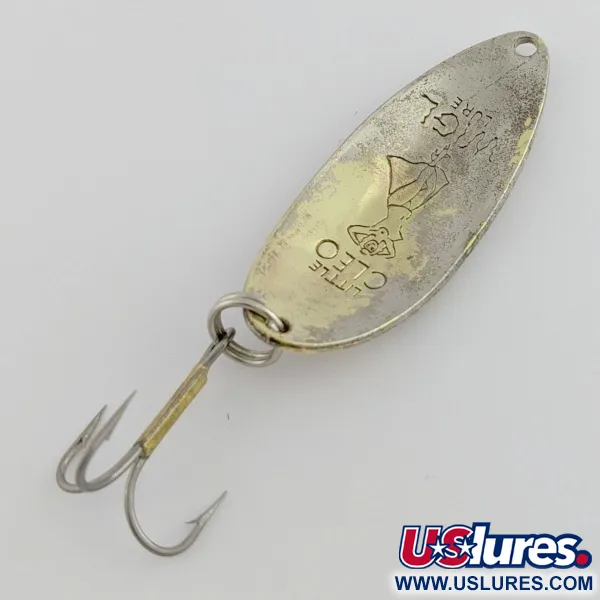 Wytłoczona na odwrocie kultowa postać „Hula Girl” pozwala natychmiast zidentyfikować tę 14-gramową (1/2 oz) wahadłówkę jako klasyczną Little Cleo z oryginalnej ery Seneca. Ten egzemplarz o długości 5,5 cm (2 1/4") posiada dwukolorowe wykończenie niklowo-mosiężne, które nosi autentyczne ślady użytkowania, co daje mu ocenę stanu 3/5. Przed przejęciem przez Acme Tackle na początku lat 80., firma Seneca Tackle Company z Nowego Jorku produkowała te błystki z precyzyjnym grawerem tancerki – motywem zainspirowanym egzotyczną tancerką, którą autor piosenek C.V. „Charlie” Clark widział w latach 30. Wielu doświadczonych wędkarzy wciąż wierzy, że logo tancerki przynosi szczęście przy połowie pstrągów i łososi w Wielkich Jeziorach. Ta konkretna przynęta, oznaczona kodem produktu 24443, posiada klasyczny, mocny osprzęt i kotwicę zabezpieczoną solidnym kółkiem łącznikowym. Mosiężny rdzeń przebija przez niklowanie na wypukłej stronie, oferując wyraźny kontrast wizualny, niespotykany w nowoczesnych reedycjach.