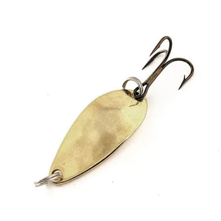 Ta wahadłówka o długości 1 1/4" (3 cm) wyróżnia się złoceniem o jasnym, lustrzanym wykończeniu. Model Little Cleo Seneca o wadze 1/8 oz (4 g) został wyprodukowany w USA przez firmę Seneca Lure jeszcze przed jej przejęciem przez markę Acme na początku lat 80. Na wewnętrznej, wklęsłej stronie wyraźnie widać wytłoczony napis „LITTLE CLEO”, co jest charakterystycznym detalem dla tego konkretnego modelu o kodzie produktu 12081. Błystka jest wyposażona w kotwiczkę o ciemnym wykończeniu oraz oryginalne kółka łącznikowe; całość zachowana w stanie 5/5 z bardzo czystą powierzchnią. Klasyczny korpus w kształcie łezki to sprawdzona konstrukcja przeznaczona do spinningowania w różnych warunkach wodnych. Ten konkretny egzemplarz stanowi doskonały przykład wysokiej jakości powłok galwanicznych stosowanych przez firmę Seneca przed zmianą metod produkcji pod nowym kierownictwem.