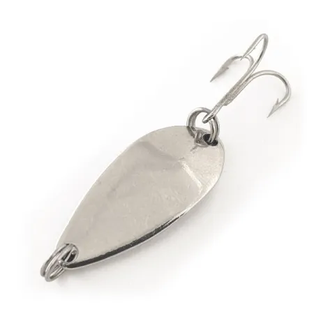 Masa 5 g (3/16 oz) nadaje tej kompaktowej wahadłówce ciężar niezbędny do precyzyjnych rzutów w stronę podwodnych przeszkód. Wykończenie w polerowanym niklu zapewnia wyraźne odblaski, charakterystyczne dla oryginalnej produkcji Seneca Lure z USA, sprzed przejścia marki do firmy Acme na początku lat 80. Korpus o długości dokładnie 3 cm (1 1/4") posiada klasyczny profil łezki, zaprojektowany z myślą o jednostajnym prowadzeniu. Każdy element uzbrojenia, od górnego kółka łącznikowego po ostrą kotwiczkę na ogonie, jest w doskonałym stanie, co odzwierciedla ocena 5/5. Identyfikacja tego egzemplarza jest łatwa dzięki wyraźnym, blokowym literom „LITTLE CLEO” wybitym bezpośrednio w metalu po wklęsłej stronie, co jest znakiem rozpoznawczym dla kolekcjonerów modelu o kodzie 12091.