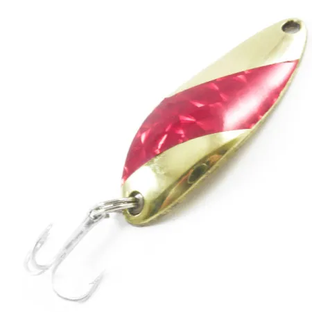 Wyraźne oznaczenia „Little Jewel” oraz logo Luhr Jensen USA wytłoczone na wklęsłej stronie sprawiają, że ta wahadłówka stanowi świadectwo klasycznej ery amerykańskiej produkcji sprzętu wędkarskiego. Przednia strona charakteryzuje się efektownym wykończeniem Gold / Red, w którym intensywna, fasetowana struktura czerwonych rombów kontrastuje z polerowanym złotem. Przy długości 4,7 cm (1 3/4") i wadze 9 g (1/3 oz), ten nieprodukowany już model vintage oznaczony jest kodem produktu 3174. Przynęta jest wyposażona w solidne kółko łącznikowe oraz ostrą kotwicę, przeznaczoną do spinningu lub trollingu. Stan ogólny oceniono na 5/5, co potwierdza bardzo dobrze zachowana powierzchnia, podkreślająca jakość dawnych metod produkcji Luhr Jensen sprzed wycofania modelu z oferty.