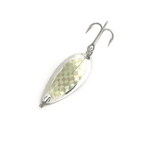 Wybita wyraźnie na spodzie nazwa lokalizacji „Hood River Ore” podkreśla pochodzenie tej wahadłówki Luhr Jensen, stanowiącej przykład ponadczasowego wzornictwa z regionu Pacific Northwest. Charakterystyczna pryzmatyczna folia o wzorze rombów pokrywa awers niklowanej błystki, tworząc wyraźny kontrast z polerowanym, metalowym korpusem. Przy wadze 5 g (3/16 oz) i długości 3 cm (1 1/4") jest to uniwersalny rozmiar na wiele gatunków ryb słodkowodnych. Ten konkretny egzemplarz „Little Jewel” o kodzie produktu 7492 jest nieużywany i zachował czyste, lustrzane powierzchnie. Uzbrojenie składa się z kotwiczki oraz kółek łącznikowych, które pozostają w doskonałym, oryginalnym stanie. Kształt łezki i prosta budowa odzwierciedlają funkcjonalną estetykę, z której marka Luhr Jensen słynie zarówno wśród kolekcjonerów, jak i wędkarzy.