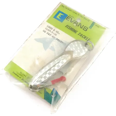 Niklowana powłoka połączona z wyrazistym, holograficznym wzorem łuski zapewnia wysoki kontrast wizualny, który był znakiem rozpoznawczym ery Glen Evans. Ten model Loco o wadze 1 2/3 oz (48 g), kod produktu 4926, to nieużywany egzemplarz (stan 6), wciąż przymocowany do oryginalnej tekturki ekspozycyjnej „The Luckiest Lures in the World”. Wahadłówka o długości 3 1/2" (9 cm) posiada wybity numer US PAT NO 3413750, co potwierdza specyficzną geometrię korpusu niezbędną do jej intensywnej pracy w wodzie. Wędkarze zazwyczaj wybierają tę wagę do spinningowania lub trollingu za szczupakiem, szczególnie w płytkich wodach stojących o głębokości do 1 m. Na osprzęt składa się solidne kółko łącznikowe oraz klasyczna czerwona koszulka z tworzywa przy oczku kotwicy, charakterystyczna dla tych amerykańskich klasyków vintage.