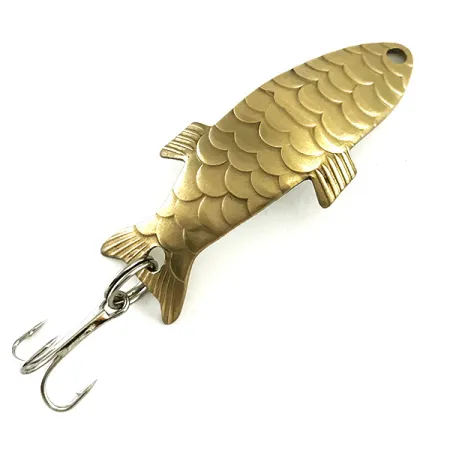 Ta wahadłówka o wadze 1/4 oz (7 g) z mosiężnym korpusem pokrytym wyraźnym wzorem łuski to klasyczny przykład amerykańskiego sprzętu wędkarskiego z połowy ubiegłego wieku. Kolekcjonerzy bez trudu rozpoznają w tym modelu Pee Bee – przynętę produkowaną w USA przez firmę Al's Goldfish, która nie jest dostępna w produkcji od lat 70. Egzemplarz skatalogowany pod numerem 6185 mierzy dokładnie 2 cale (5 cm) i prezentuje charakterystyczną sylwetkę ryby oraz detale płetw, typowe dla linii vintage tej marki. Na odwrocie wyraźnie wytłoczono nazwę marki oraz modelu, co potwierdza autentyczność tego rzadkiego okazu. Ten konkretny przedmiot jest w stanie 5/5, zachowując nienaganny, jednolity wygląd metalowych powierzchni. Uzbrojenie składa się z solidnego kółka łącznikowego i ostrej kotwiczki, co pozwala na łowienie lekkim zestawem spinningowym. Każda łuska na wypukłej stronie jest precyzyjnie zarysowana, co podkreśla jakość matryc stosowanych przed dekadami.