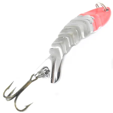 Ta amerykańska wahadłówka o wadze 1/4 oz (8 g) wyróżnia się charakterystycznym karbowanym korpusem, zaprojektowanym tak, aby odbijać światło pod wieloma kątami. Przy długości 5 cm (2"), niklowana powierzchnia jest uzupełniona wyraźnym różowym akcentem w górnej części – to połączenie kolorów często stosowane dla poprawy widoczności w różnych warunkach wodnych. Na spodniej stronie metalu wybito nazwę „SHARPIE”, która wraz z kodem produktu 4234 identyfikuje przynętę. Ten egzemplarz pozostaje w doskonałej formie, z oceną stanu 5/5, charakteryzując się lśniącym, odblaskowym wykończeniem i nienaruszoną malaturą. Jest uzbrojony w oryginalne kółka łącznikowe i ostrą kotwicę, co pokazuje jakość amerykańskiej produkcji. Schodkowa faktura przypominająca łuskę na korpusie zapewnia unikalny profil w porównaniu do standardowych, gładkich wahadłówek.