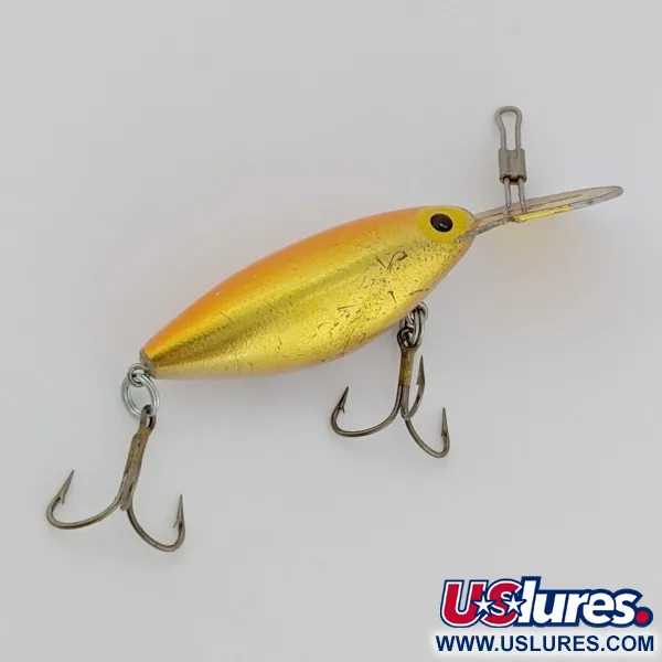 Numer patentu USA 220,658, wybity bezpośrednio na powiększonym metalowym sterze, czyni ten ważący 1/4 oz (6,5 g) oryginał Storm klasycznym znaleziskiem z okresu przed przejęciem przez firmę Rapala. Ten pływający wobler o profilu shad i długości 2" (5 cm) wykończony jest w metalicznym złocie, przechodzącym w srebrny brzuch. Zaprojektowany do osiągania głębokości 5–13 ft (1,5–4 m), pozostaje stabilny nawet w silnym nurcie, co czyni go niezawodnym wyborem na sandacze, okonie i szczupaki. Na metalowym sterze i korpusie widnieją wyraźne oznaczenia marek Storm i Thin Fin, określające jego pochodzenie. Zużycie powierzchni złotej powłoki jest minimalne, co pozwala na ocenę stanu 4/5 przy zachowaniu wysokich właściwości odblaskowych. Model ten doskonale nadaje się do trollingu, spinningu lub dryfu. Kod produktu 24493.