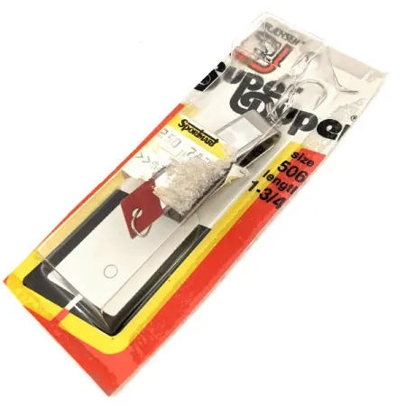 Masa tego konkretnego modelu wynosi dokładnie 1/4 oz (7 g), co czyni go uniwersalnym wyborem dla wędkarzy łowiących na lekki zestaw, nastawiających się na pstrągi lub mniejsze ryby spokojnego żeru. Model o rozmiarze 506 i kodzie produktu 12846 charakteryzuje się wykończeniem w kolorze polerowanego niklu z czerwonym akcentem (Nickel/Red), naniesionym na charakterystycznie wygiętą część ogonową. Przynęta jest nieużywana, dzięki czemu zachowała oryginalny, fabryczny blask metalu. Oryginalne opakowanie typu vintage zachowało się w nienaruszonym stanie; widnieje na nim naklejka cenowa sklepu „Sportmart”, a na odwrocie oznaczenie koloru „CHRM/SLV P-LITE”. Firma Luhr Jensen & Sons z Hood River w stanie Oregon zaprojektowała tę przynętę o długości 1 3/4" (4,5 cm) tak, aby łączyła w sobie cechy obrotówki i wahadłówki. W przypadku trollingu instrukcja na karcie sugeruje prowadzenie przynęty 30–50 stóp (9,1–15,2 m) za łodzią, najlepiej z przyponem o długości 18” (45,7 cm) przy użyciu zestawu do trollingu jeziorowego. Uzbrojenie składa się z pojedynczego kółka łącznikowego przy zaczepie linki oraz ostrej kotwicy na tylnym oczku.