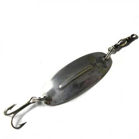 Srebrzona powłoka nadaje charakter tej klasycznej wahadłówce, zapewniając doskonale widoczny błysk, który od ponad stu lat stanowi podstawę wyposażenia pudełek wędkarskich. Przy wadze 1/4 oz (7 g) i długości 1 1/2" (4 cm), model ten posiada charakterystyczne podłużne przetłoczenie, które zapewnia stabilną pracę przynęty podczas prowadzenia. Na tłoczonym z metalu korpusie widnieje kod produktu 0258, dobrze znany wędkarzom łowiącym szczupaki i sandacze tymi produkowanymi w Kanadzie klasykami. Od momentu przeniesienia produkcji wyłącznie do Kanady w 1978 roku, przynęty te utrzymują wysokie standardy wyznaczone w 1920 roku, gdy model ten wszedł do seryjnej produkcji. Uzbrojenie pozostaje w pełni sprawne i składa się z kotwicy oraz krętlika połączonych kółkami łącznikowymi. Egzemplarz oceniany jest na 4/5, cechuje się jasną, czystą powierzchnią i dobrze zachowanym metalicznym połyskiem.